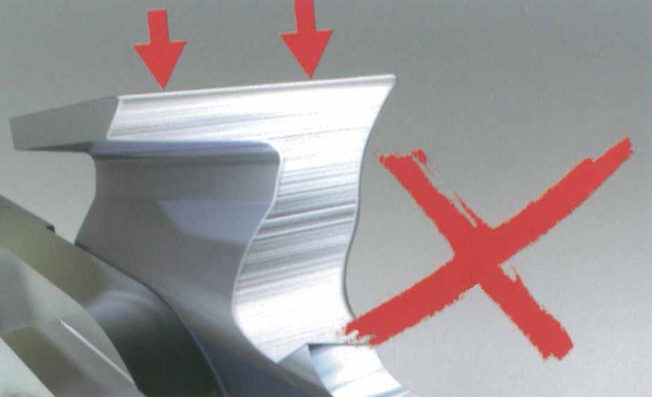 誤った目立てをしてしまうと、すぐに切れやんだり、曲がって切れてしまったりします。誤った目立ての例をいくつかご紹介します。