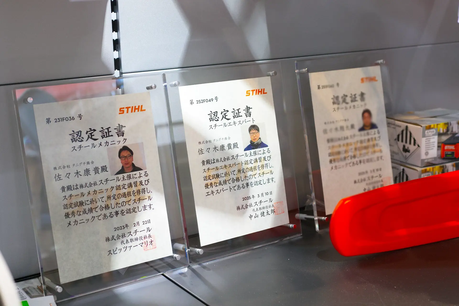 現在タニグチ商会には、メーカー講習を受講し認定を取得した整備スタッフが多数在籍しており、